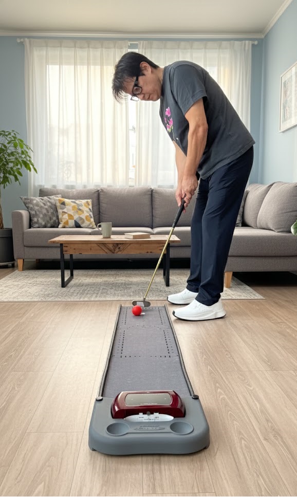 파크골프도 골프와 마찬가지로 숏게임, 즉 어프로치와 퍼팅이 좋은 스코어를 만드는 핵심입니다. 좋은 숏게임 감을 갖추기 위해서는 라운딩을 자주 나가고, 집에서도 연습을 해야합니다. 라운딩을 자주 나가기 어려운 겨울철에는 집에서의 연습으로 어프로치와 퍼팅 감각을 유지하는게 좋습니다.